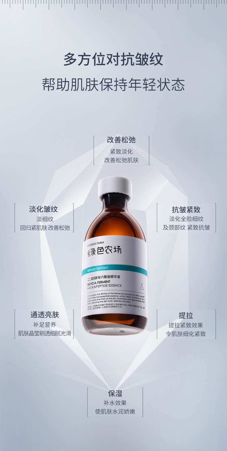 蕴含二裂酵母发酵产物滤液及六胜肽精华成分,帮助改善肌肤干纹、细纹等,莹润嫩肤,让肌肤水润细腻有光泽。