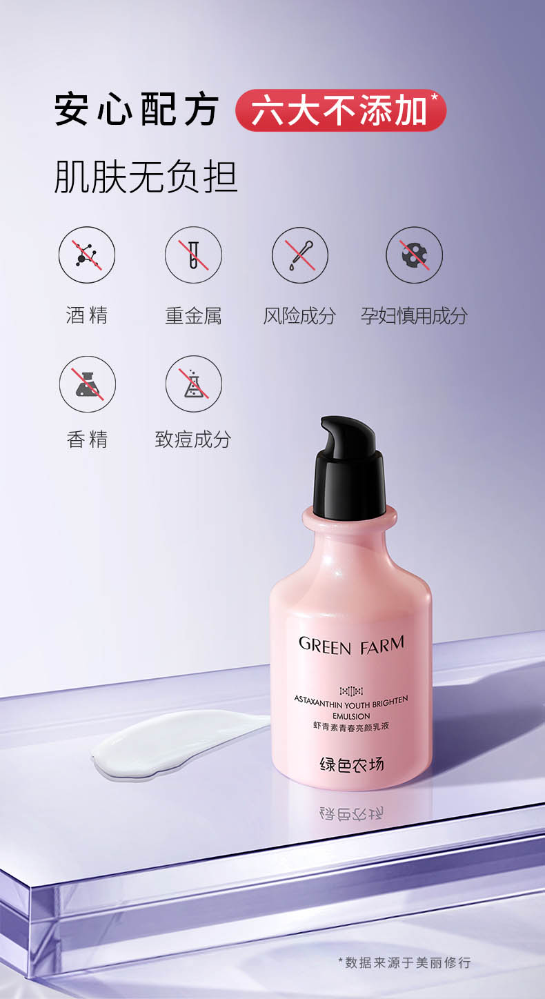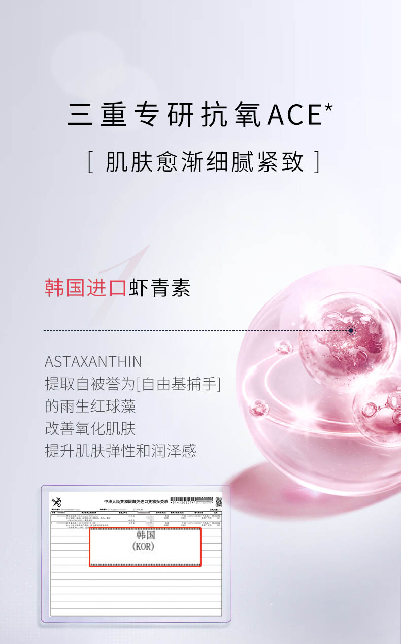 质地细腻滋润,添加虾青素和富勒烯成分,可帮助肌肤改善老化现象,能够改善皱纹和细纹,