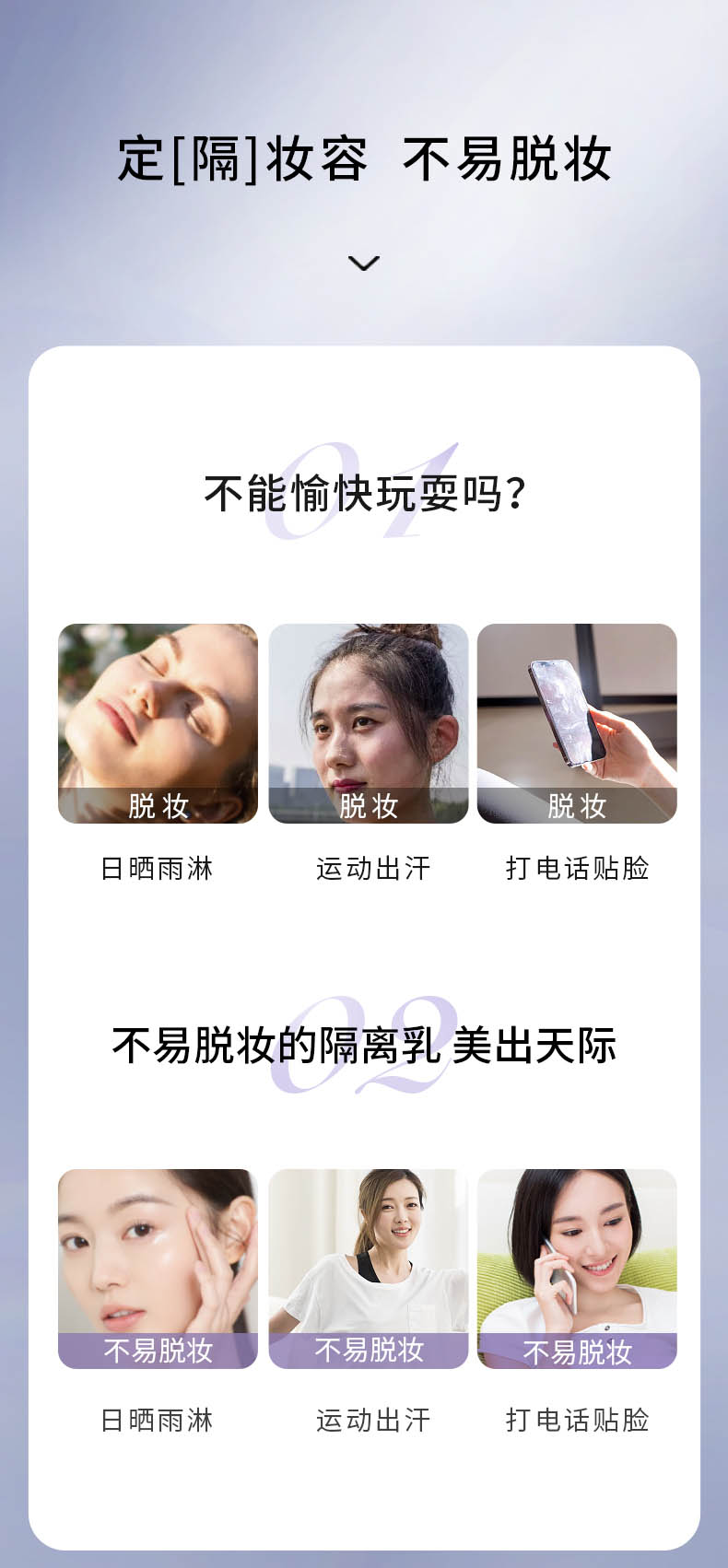 描述:清爽低油配方,质地轻薄细腻,不堵塞毛孔,具有修饰、提亮肌肤、遮盖瑕疵的作用,同时蕴含优质的维C和珍珠粉,令肌肤自然透亮。