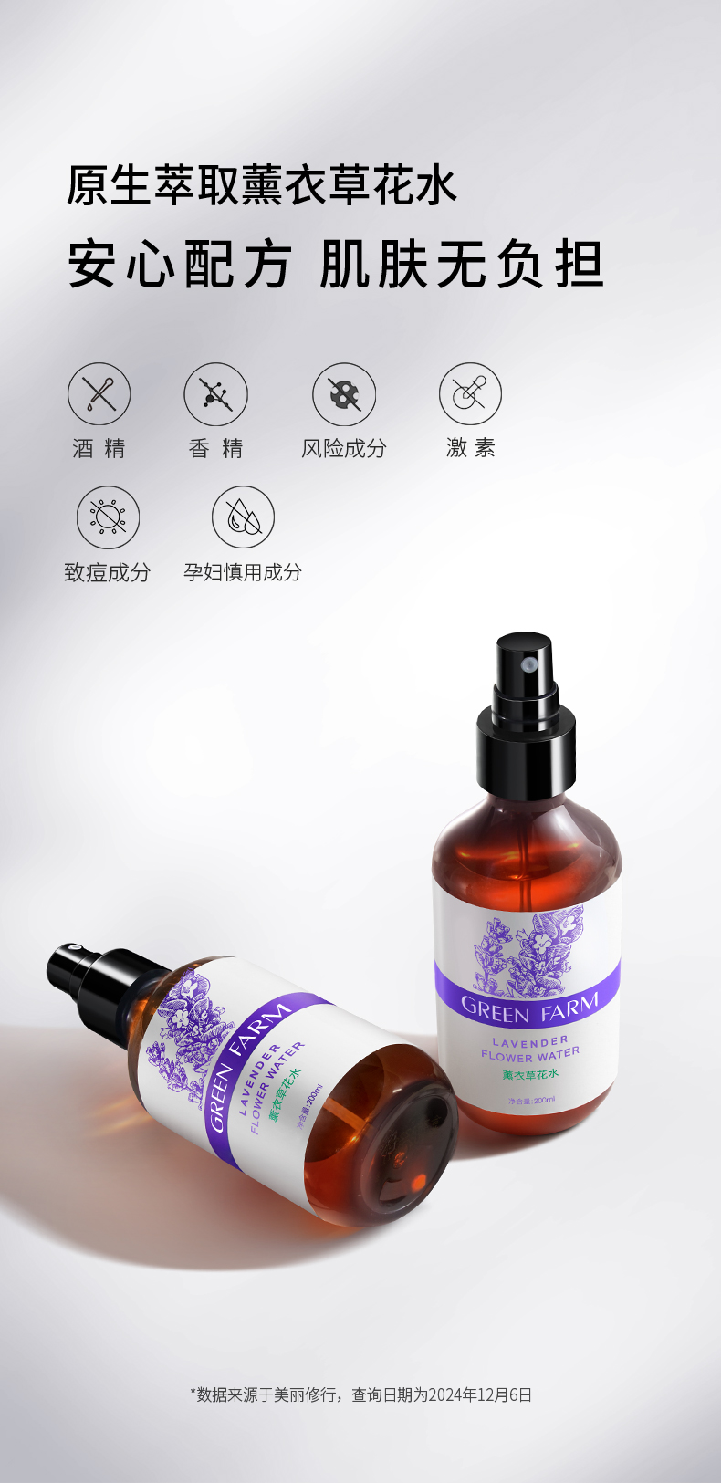 本品取自薰衣草花穗,保留了丰富的天然成分,给肌肤补充水分,细腻肤质,令肌肤湿润细腻有光泽。