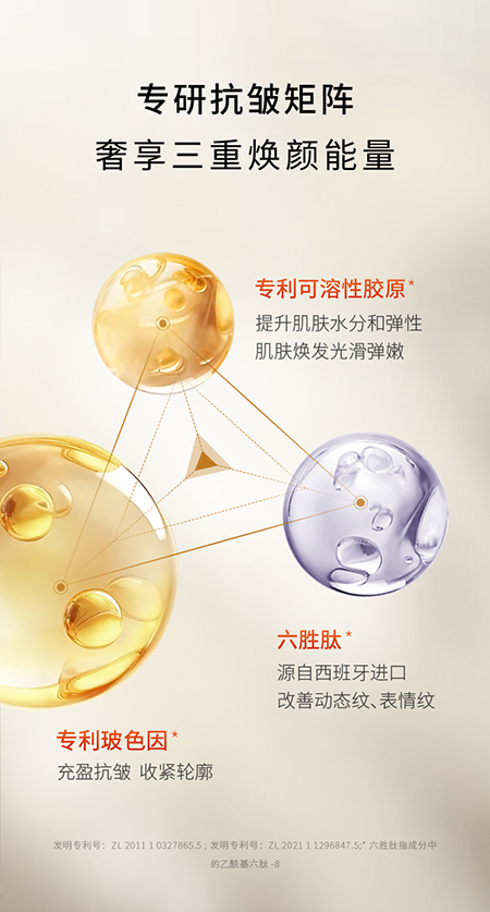 描述:专研抗皱润颜配方,滴滴珍萃,令肌肤如丝绸般柔润细腻,改善并淡化干纹细纹,赋予肌肤水润靓丽,娇嫩细滑。