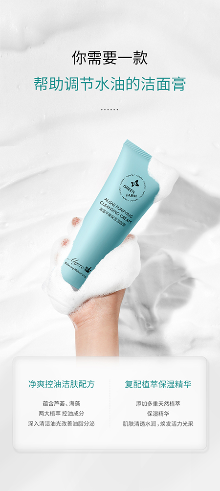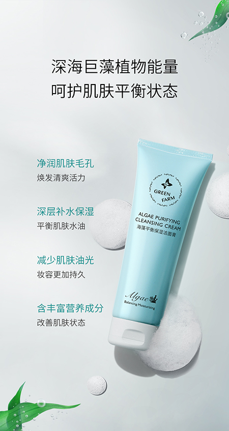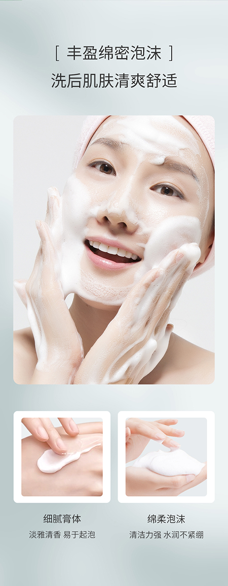 描述:产品配方亲肤、泡沫细腻,蕴含海藻精华成分,能清洁肌肤表皮及毛孔污垢、彩妆残留物,并调理水油平衡,给予您清爽的洁面体验,令肌肤洁净不紧绷。